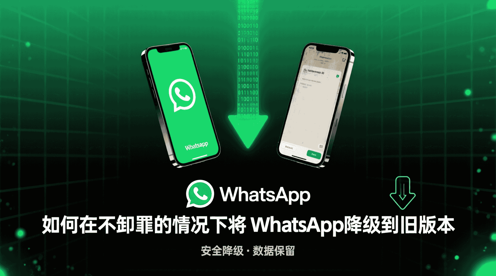 无需卸载即可将WhatsApp降级:ADB备份数据、提取旧版APK、覆盖安装,保留聊天记录与媒体文件。